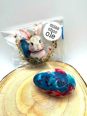 HUEVO CHOCO S (50g) Un huevo de chocolate de 50 g, relleno de pequeños dulces y presentado en una bolsita con conejito, es el...